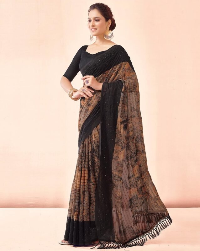 Women Georgette Saree with Scalloped Border